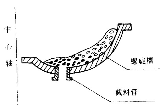 螺旋選礦機(jī)的結(jié)構(gòu)如圖1所示。它是把一個(gè)溜槽繞垂直軸線彎曲成螺旋狀而做成的,螺旋有3~5圈,固定在垂直的支架上,螺旋槽的斷面為拋物線或橢圓的一部分,槽底在縱向(沿礦流流動(dòng)方向)和橫向(徑向)均有一定的傾斜度。由第二圈開始,大約在槽底中間部位設(shè)有重產(chǎn)物排料管(共4~6個(gè)),排料管上部裝有截料器,它能攔截重礦物流使之進(jìn)入排礦管排出,截料器的兩個(gè)刮板壓緊在槽面上,且其中的可動(dòng)刮板可以旋轉(zhuǎn)用來調(diào)節(jié)兩刮板間張口角度大小,從而調(diào)節(jié)重礦物的排出量,如圖2所示。為提高重產(chǎn)物的質(zhì)量,在槽內(nèi)緣設(shè)有若干個(gè)加水點(diǎn),稱為洗滌水,它由中央水管經(jīng)過閥門給入槽內(nèi)緣。